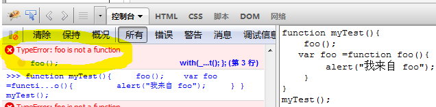 好,我们现在回到第一段code里面。为什么会报错呢?其实,根据我么根据上面变量提升原件以及js的作用域(块级作用域)的分析,得知 上面代码真正变成如下: