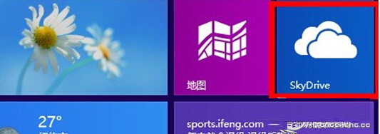 1、首先,我们将屏幕切换到metro桌面,找到并点击进入skydrive;