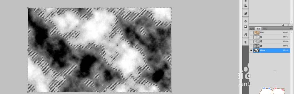 3、转换到通道面板,新建一个Alpha1图层,滤镜--渲染--云彩