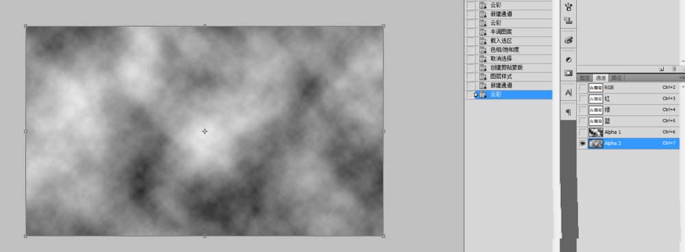 8、在通道面板中新建Alpha2通道,滤镜--渲染--云彩