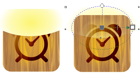 5、绘制小闹钟图标,颜色填充深一点,拖拽出线性渐变,如图所示效果。