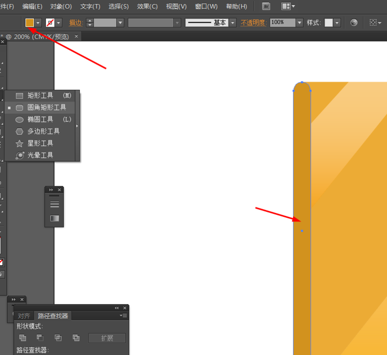 4、选择圆角矩形工具,画一个圆角矩形图形,并填充颜色,如图所示