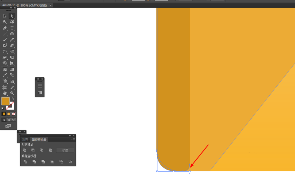 5、选择直接选择工具,把圆角矩形图形的另外一端的锚点进行调整一下,如图所示