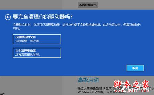 完全清理驱动器 需要注意的是,在初始化过程中,系统会提示“是否完全清理驱动器?”如果用户电脑中有隐私内容的话,完全清理是一个不错的选择。