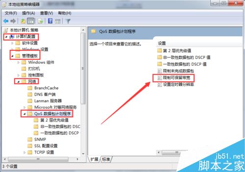 接着展开“计算机配置”--管理模板--网络---QoS数据包计划程序,