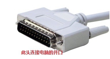 1、首先确认主机上支持什么线缆,支持USB就用USB线,我的支持并口线,所以我就用并口线,然后需要将并口线连接在电脑和打印机上,然后再连接打印机上的电源线,见下图