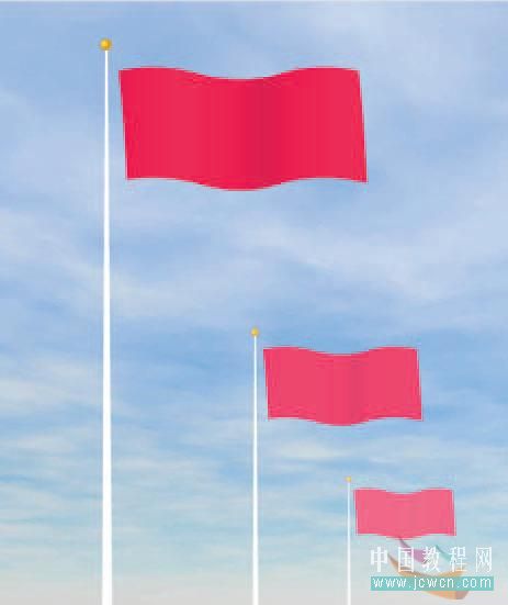 12. 不要忘记添加一个旗杆和一个天空背景以营造令人满意的效果。试着将这个动画封装到一个影片剪辑然后拖一个新的实例到舞台上。缩放它们并排列成远影形成最终效果。