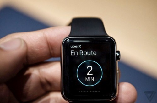 Apple Watch有两种基本的使用方式:按Digital Crown回到主画面、选择一款应用;或从表盘底部向上滑动手指访问Glances,快速浏览安装的所有应用。苹果在我试玩的Apple Watch上安装有数款应用:Uber、SPG宾馆应用、Shazam等。有趣的是,Glances显然不是应用本身。点击Glance中的一个按钮后,用户会看到一个加载界面,然后才是应用的界面。因此,点击SPG Glance中的“unlock door”按钮会开启SPG应用,并再次显示按钮。这倒不是什么大问题,但我也费了数秒钟才理解这是怎么回事。