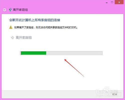 5、点击后,Win8.1系统正在离开退出家庭组,稍等一会,如下图所示。