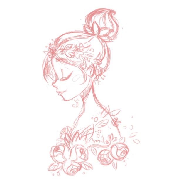 我不想画面充斥着太多的背景元素。让我们专注于一幅简单而干净的人物肖像画,去描绘一位戴着花环的春之少女轮廓。