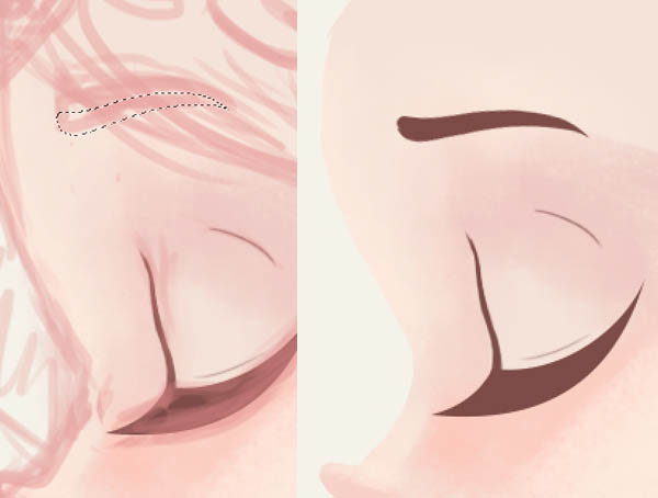 13、使用套索工具(L)勾勒优雅的眉毛。