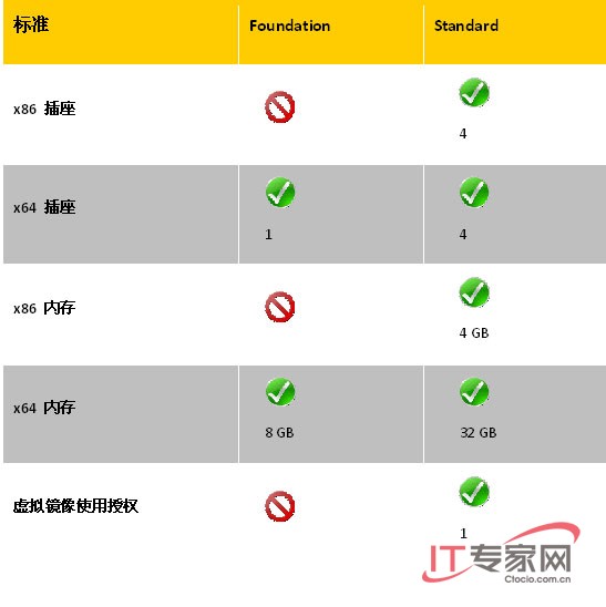 Windows Server 2008 Foundation与Windows Server 2008 Standard角色和标准比较: