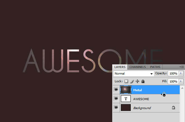 1、创建一个900*600的文档,分辨率300px/英寸。#332222填充背景。打入awesome文字,使用加粗,大小36pt。