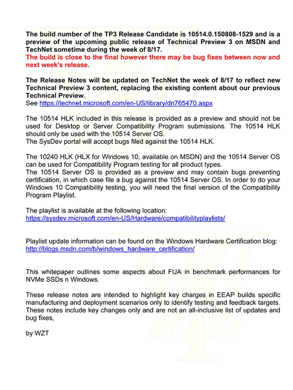 今天泄露的这个版本号为Build 10514.0.150808-1529(编译于8月8日),确切地说是第三个技术预览版的候选版本(TP3 RC)。