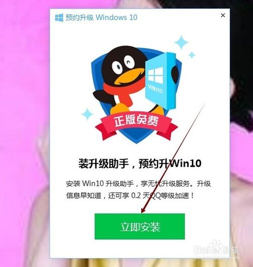 7、双击运行Win10升级助手安装包就可以安装Windows10升级助手了,在打开的界面上,我们直接点击立即安装就可以了,如下图所示。