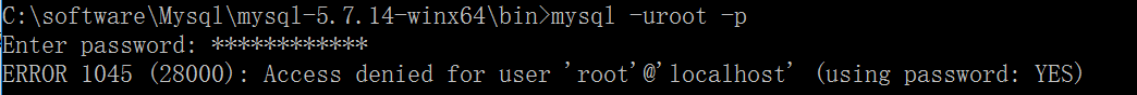 命令行输入 mysql -u root -p,错误描述:error 1045 (28000)