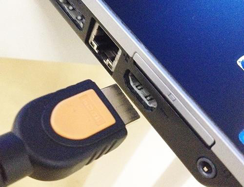 第二步:将高清线的一头插入电脑上的HDMI接口。接口和线头是完全匹配的;