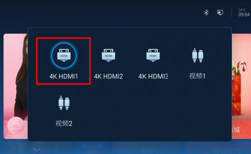 第四步:通过遥控器切换信号源,将信号源切换至高清线所插的那个HDMI接口。