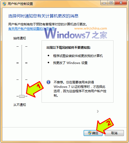 ——打开“控制面板”,点击“系统和安全”,选择“操作中心”,点击“安全”,在展开的详细设置内容中找到并点击“用户帐户控制”下方的“选择您UAC级别”,然后在弹出的对话框中将左边的滑杆调整为“从不通知”,再点击“确定”就可以禁用UAC了(需要重新启动系统才能生效)。