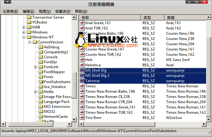 5、注册表,打开[HKEY_LOCAL_MACHINE\\Software\\Microsoft\\Windows NT\\CurrentVersion\\FontSubstitutes]