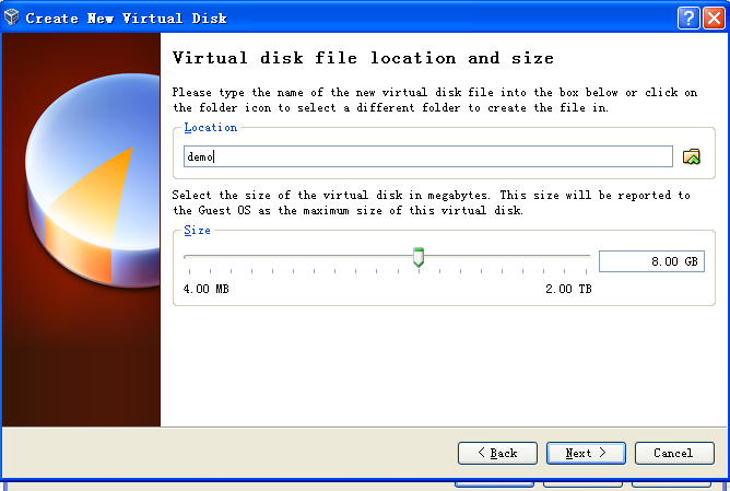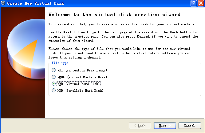 选择VHD (virtual hard disk)