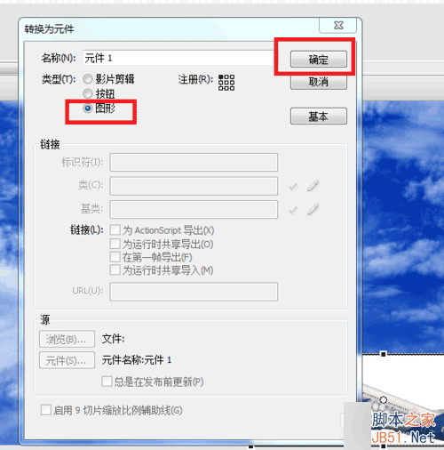 8、然后选中舞台中的“飞机”位图,点击鼠标右键,选择“转换为元件”命令,将它转换名为“元件1”的“图形”元件,如图所示。