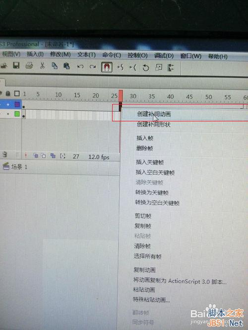 11、鼠标右键在”图层2“的第1帧到第60帧之间的任意1帧,在弹出的菜单中选择”创建补间动画“选项,创建补间动画。如图所示。