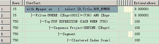 在 Sql Server 2000 之后的版本中,ROW_NUMBER() 这种分页方式一直都是很不错的,比起之前的游标分页,性能好了很多,因为 ROW_NUMBER() 并不会引起全表扫表,但是,语法比较复杂,并且,随着页码的增加,性能也越来越差。