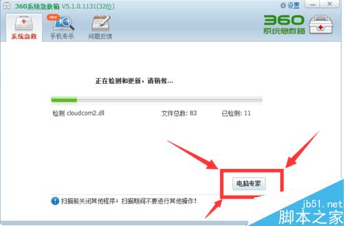 5、进入【系统盘急救箱】之后,依次点击【电脑专家】按钮,不用管进度条运行。