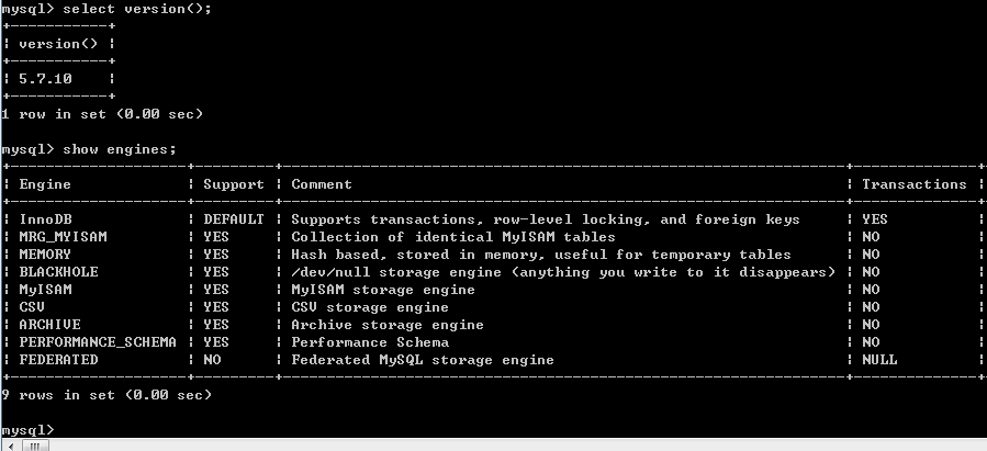 如下图所示,显示MySQL数据库的所有存储引擎,default为当前默认的存储引擎,还有是否支持事务等信息:这里写图片描述