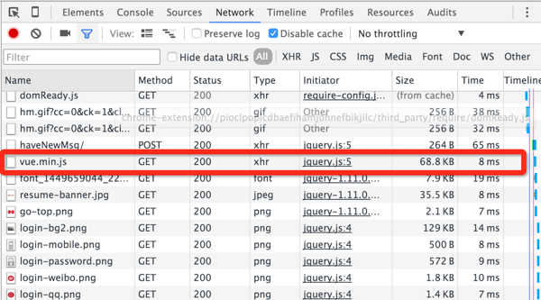 下图是页面多个组件依赖vue.js的情况(jquery和vue混用的场景):