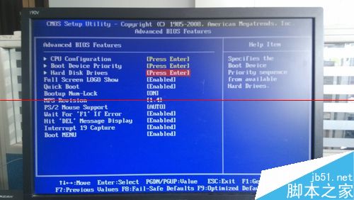 1、首先,我们先介绍下U盘装系统开始步骤。将启动U盘插入电脑主机,开机后一般按F8或DEL进入BIOS系统,然后选择Advanced BIOS Features,再选择Hard Disk Drives。