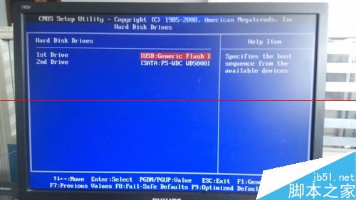 2、将1st Drives 设置成启动U盘,即USB。