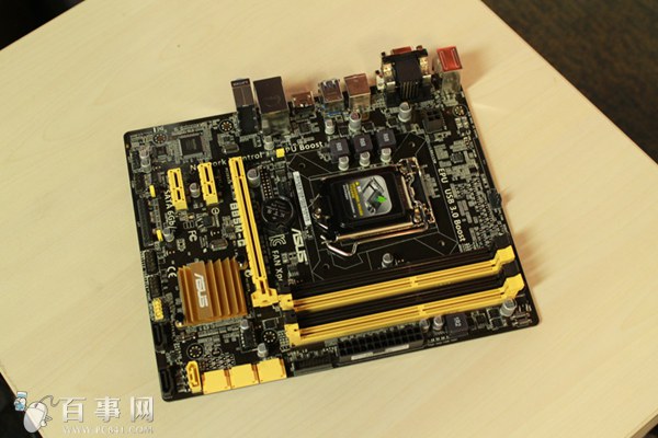 看一下B85主板正面效果,这种小板子只支持单张显卡,4条内存插槽,固态硬盘支持SATA 3,并配备USB3.0接口,该有的基本有了,一切都从简比较经济。华硕黑板风格,是不少人的最爱,的确现在的主板商华硕算是非常非常顶尖的了。