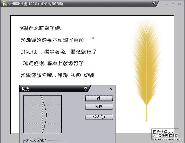 6.现在就可以随意换成自己想要的色彩。如果想要变形的可以执行滤镜 > 扭曲 > 切变。