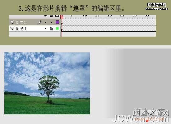 选中矩形,垂直中齐,右键转换为“影片剪辑”,名“遮罩”。用右方向键将它右移至图片左边对齐,如图3: