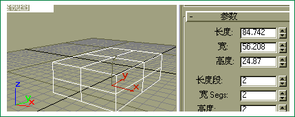 我们看下它的卷展栏:在 --名字与颜色--下面,有我们所建模这个物体的名称,右边那个小色块是它在工作窗口所显示的颜色。--创建模式--是指工作视图窗口中以正方体方式画还是以不规则的盒子方式创建物体,大家试下就会明会。再看下--键盘输入的方式--。它左边有个"+"号,就是说可以打开,我们按一下--键盘输入的方式--,再出现一个卷展栏,它的意思是说可以用数字输入这个物体的大小以及在工作窗口的位置,输入数字后,按一下创建,就按照你所输入的数字创建成出物体。我们再看下--参数--,参数不是指你所创建物体的基本数,比喻长度、宽、高等。现在我们了解了Box(盒子)的卷展栏,就可以在透视图中画一个Box(盒子)了。把鼠标放在透视图中,按住鼠标的左键,从左上角拖到右下角,定Box(盒子)的长和宽。放开左键,再向上拖鼠标,定Box(盒子)的高度,再按下左键,确证高度,一个立方体就做好了,你看,就是那么的简单。同时,在--键盘输入的方式--下的卷展栏里出现了这个立方体的参数,以图1右边。
