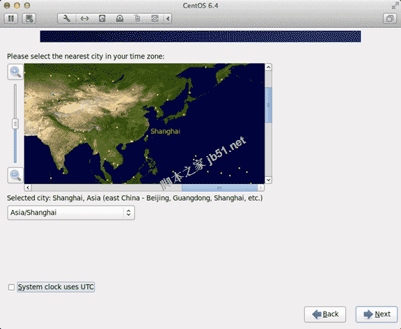 10、时区可以在地图上点击,选择"shanghai"并取消System clock uses UTC前面的对勾