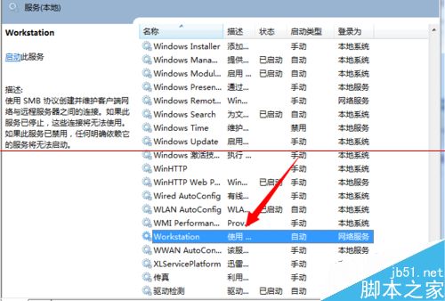 5、以同样的方式找到workstation服务,将该服务启动,启动类型更改为自动