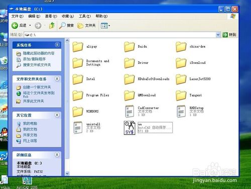 1、这里的介绍都是在Winxp系统下,先设置文件夹选项(显示所有文件):打开“我的电脑”—点击“工具”选项—点击“文件夹选项”—点击“查看”选项—点击右侧拉条并往下拉,找到“显示所有文件和文件夹”,选中它并确定。如果已设置显示所有文件,此步骤可跳过,如右图: