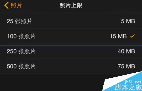 6、系统最多可以让我们选择同步 500 张照片,即75MB 大小。