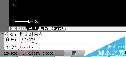 2、输入命令 limits,这里是不分大小写的。该命令的意思是重新设置模型空间界限。如下图,再按回车键。