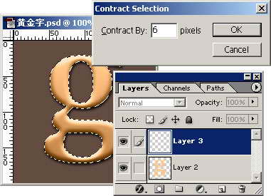 8、这一步为这个效果加上一点光泽。按ctrl + shift + N新建立一个图层,取名layer3。然后选择Select / Modify / Contract,在弹出面板里输入6,按OK完成操作。如图9所示。
