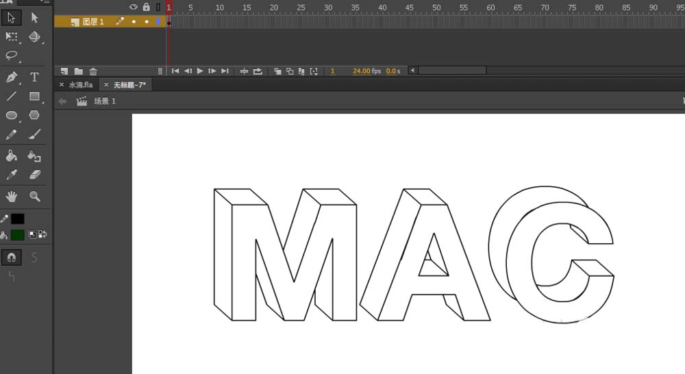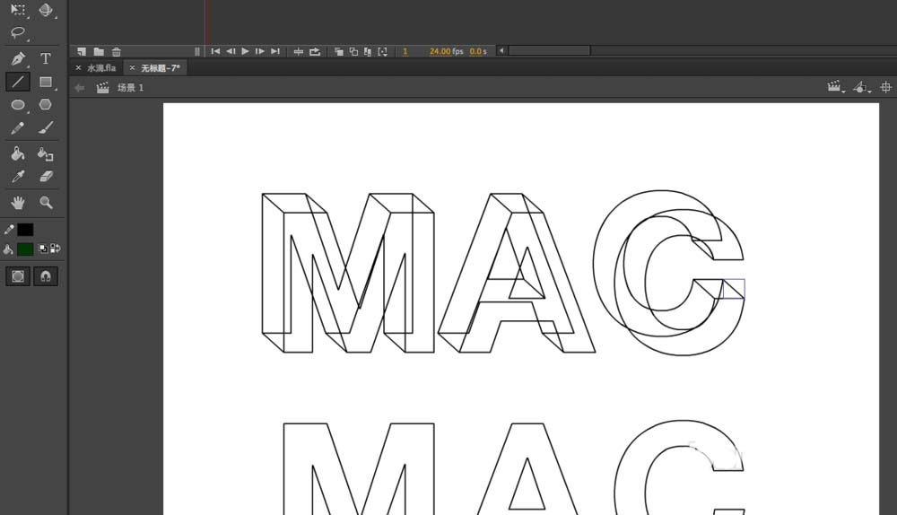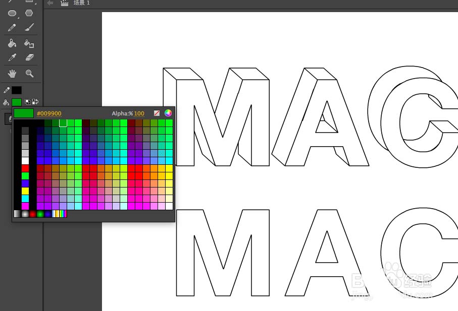 8、然后再次选中立体字母,按住CTRL+B,再按一次,将文字再次打散,因为使用了直线工具进行连接,如果没打散无法上色,选择颜料桶工具,颜色作为参考,在面上一层填充
