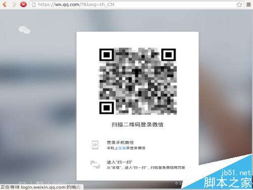 2、进入网页版微信主页,与网页版 QQ 类似,也是需要手机扫描二维码进入。