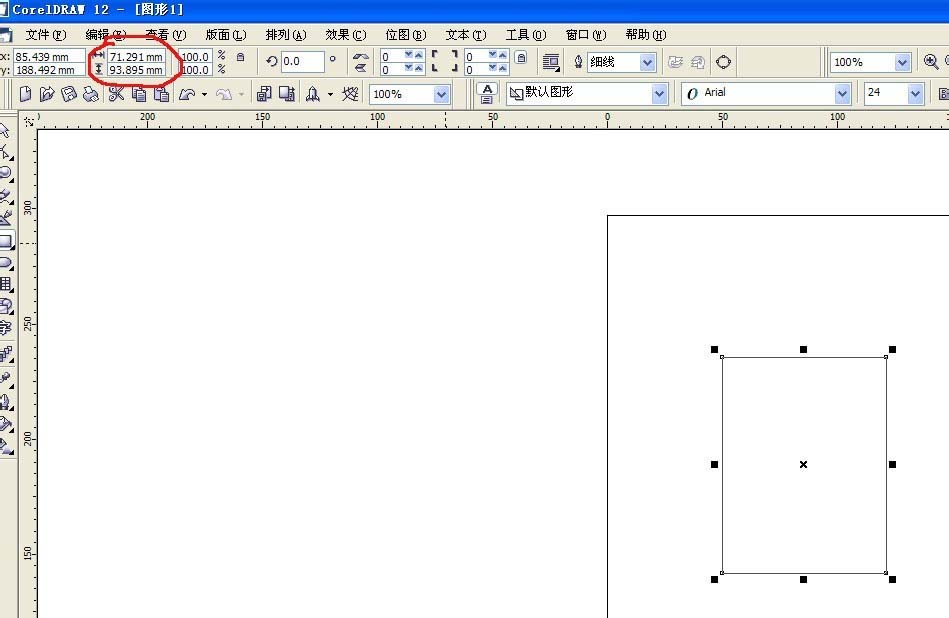 3、这个长方形的大小是可以修改的,怎么修改呢?根据图中所圈的地方改成你想要的尺寸。
