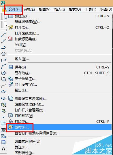 3、输入publish命令后空格或回车,或者点击文件,发布: