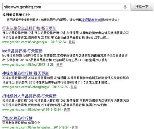 我们看到什么结果都没有。但是在360搜索引擎输入site:www.geshicq.com,就有结果了,如下图:
