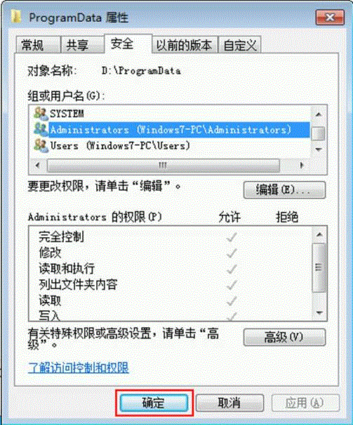 21、更改权限后,直接点击“确定”按钮。如下图所示: