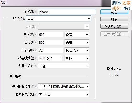 利用圆角矩形工具创建出iPhone的轮廓。这里我使用的圆角为50px。